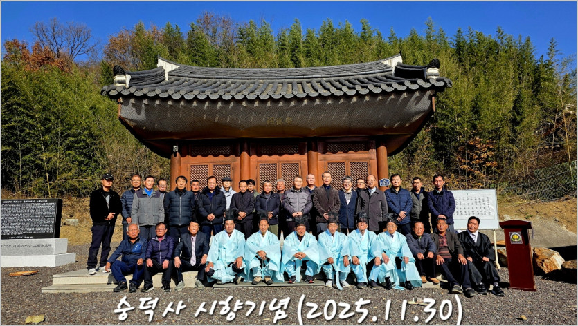 이 숭덕사 사우(祠宇)는 2018년 입향조 이하 별세하신 모든 일가 분들의 위패를 모시기 위하여 종의(宗意)를 모아 건립하여 현재 입향조로 부터 40世까지의 위패 300여 위가 모셔져있으며, 금년에는 37世 金寧金氏(判淳 대부인), 39世 鶴岩·二德, 40世 相烈·宗烈, 延安金氏(在鎔 대부인) 이상 여섯 분의 위패봉안식(位牌奉安式)을 먼저 거행하고 본 향사를 올렸다.